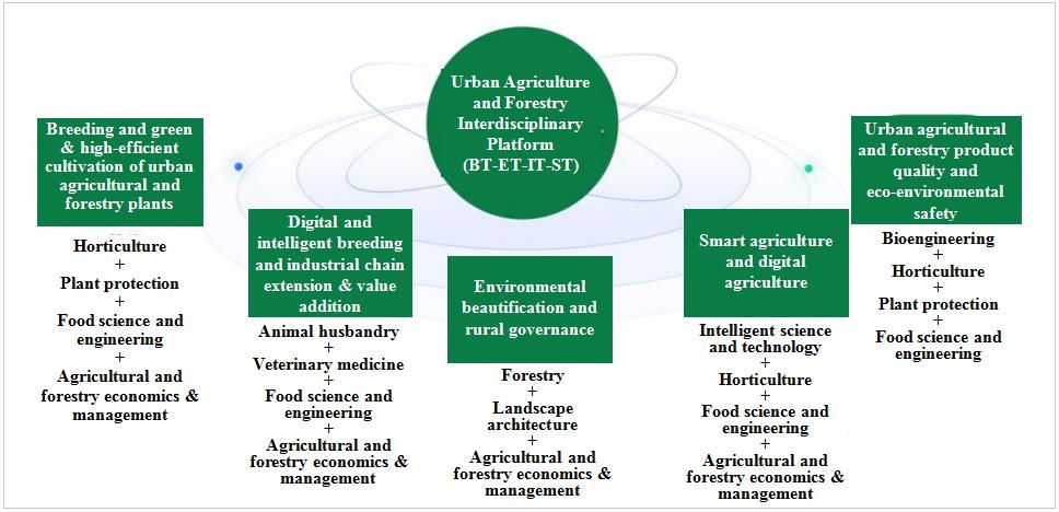 BUA currently boasts 11 first-level disciplines, including bioengineering, plant protection, horticulture, crop science, animal husbandry, veterinary medicine, agricultural and forestry economics & management, business administration, forestry, food science and engineering, and intelligent science and technology. It offers seven professional degree programs (including the Master of Bioengineering and Pharmaceutical Science, Master of Veterinary Medicine, Master of International Business, Master of Landscape Architecture, Master of Forestry, Master of Social Work, and Master of Agriculture), covering 13 enrollment fields in total. During the 14th Five-Year Plan period, BUA developed a diversified and characteristic urban agricultural and forestry disciplinary system, where agricultural science serves as the core, and agriculture, engineering, management and interdisciplinary studies develop in a coordinated manner.