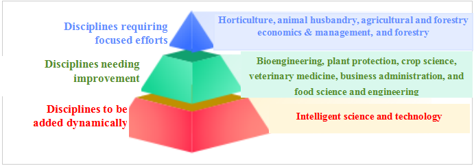 BUA classified disciplines into the disciplines requiring focused efforts, disciplines needing improvement, and disciplines to be added dynamically. For the disciplines requiring focused efforts, including horticulture, animal husbandry, agricultural and forestry economics & management, and forestry, BUA prioritized input of resources to deliver research outcomes. For the disciplines needing improvement, it aligned with the interdisciplinary trends of "new agricultural sciences" and "new engineering sciences", centering on bioengineering, plant protection, crop science, veterinary medicine, business administration, and food science and engineering, to strengthen their distinctive positioning and competitiveness. For disciplines to be added dynamically, such as intelligent science and technology, it monitored frontier areas such as AI, carbon peaking and carbon neutrality, and the modernization of rural governance, and established a mechanism featuring a demand-driven approach, dynamic evaluation, and rolling cultivation.