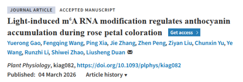 Recently, a team led by BUA's Professor Duan Liusheng published a research paper titled Light-induced m⁶A RNA Modification Regulates Anthocyanin Accumulation during Rose Petal Coloration in Plant Physiology, an internationally renowned academic journal. The paper reveals for the first time the epigenetic transcriptional regulatory mechanism by which light signals mediate light-sensitive rose petal coloration through regulating the dynamic changes of RNA m⁶A methylation. Associate Professor Gao Yuerong and master degree candidate Wang Fengqing from the College of Plant Science and Technology of BUA are co-first authors of the paper, and Professor Duan Liusheng is the corresponding author.